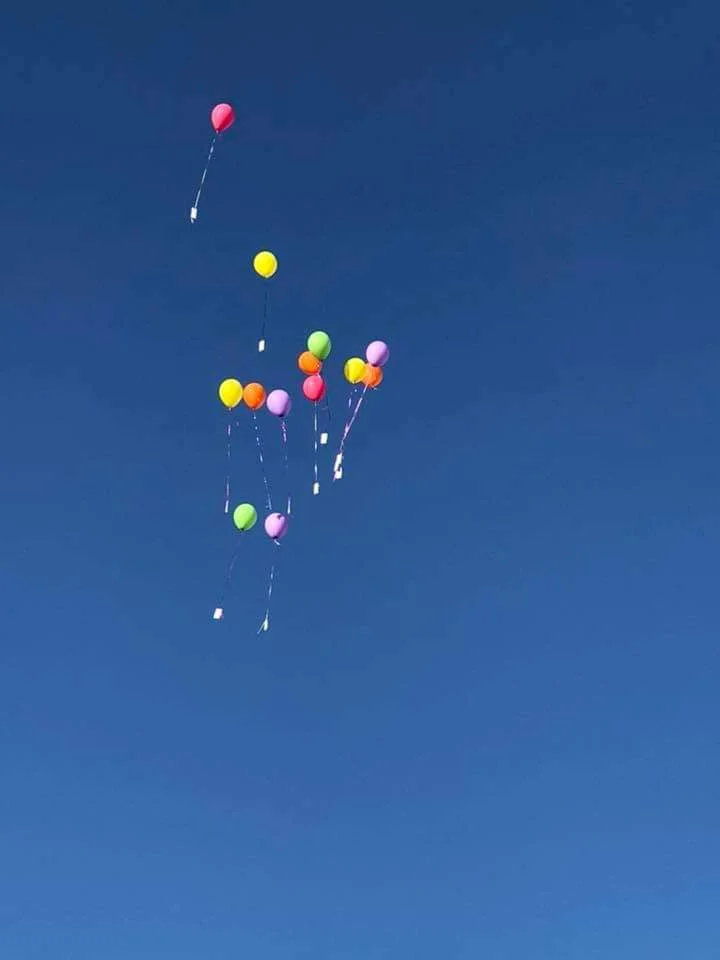 Ding dong ditched with flowers and balloons
