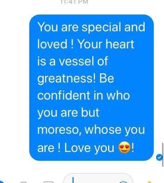 Encouraging message sent to a group of women involved with outreach to sex trafficking victims